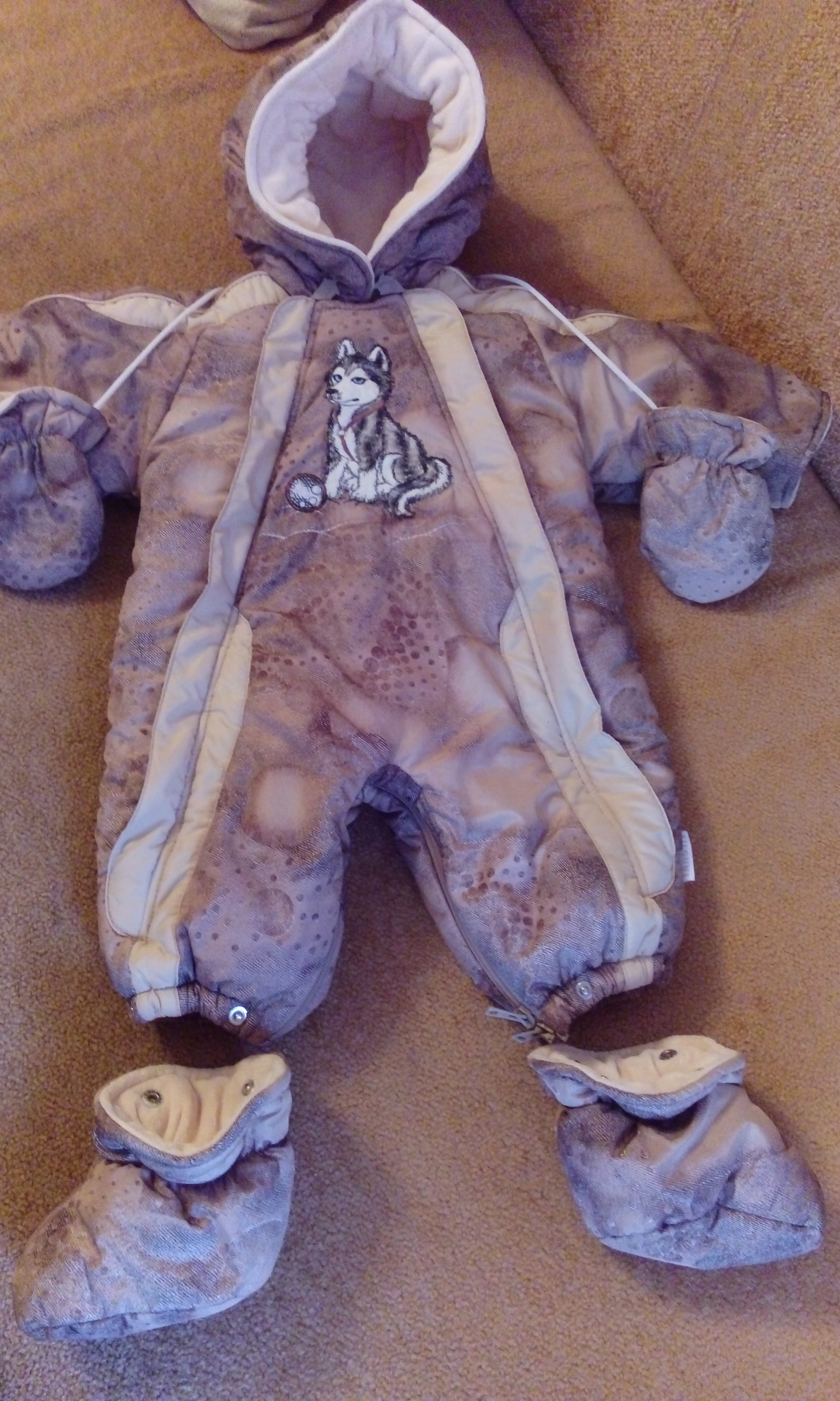 Продано Продаю бу комбинезон-трансформер Pilguni Хаски на овчине р.68 Носили (только в коляске) осень - как конверт, зиму и весну (с 3 до 8 месяцев). Состояние идеальное. Цена 2500 руб. http://www.kidkat.ru/sale/kombinezon...asilkoviy.html - цвет бежевый/джинс Комбинезон-трансформер Pilguni Хаски имеет отстегиваемую подкладку из овечьей шерсти Подстежка крепится к комбинезону с помощью кнопок, расположенных в районе шеи; и пуговиц, расположенных в рукавах и штанинах комбинезона. Утеплители: ISOSOFT 240гр.(утеплитель нового поколения) + мягкая подстежка на овчине. Комбинезон-трансформер 2 в 1: Подходит для осени, зимы и весны. Температурный режим: с овчинной подстежкой - до -30С, без овчинки - от +10 до -10С. Внутренняя сторона: 100% хлопок высокого качества. Внутренняя сторона капюшона и отворотов рукавов - мягкий теплый велюр Верх: мягкая глянцевая болоньевая ткань (47% полиэстер, 53% полиуретан). Ткань с дополнительной водооталкивающей пропиткой, не продувается и в то же время дышит. На морозе остается мягкой. Комбинезоны-трансформеры большемерят на полразмера, если к ним пристегнуть пинетки. Если комбинезон сложен в конверт - идет размер в размер Комбинезон-транформер Pilguni Хаски с хлопковой подкладкой, трансформируется в удобный конверт с рукавами. В комплект входят мягкие варежки - на одной веревочке, и пинетки на овчине - крепятся к комбинезону-трансформеру на 4-х кнопках каждая. Производство: Pilguni (Пилгуни) Польша Вложение 36027 Вложение 36028 Вложение 36029 Вложение 36030 К комбинезон продаю новую шапку Pilguni р.68 Теплая зимняя шапочка Пилгуни на завязках. Шапочка Pilguni декорирована качественной вышивкой из слова "Husky", Хаски. Шапочка надежно закрывает ушки ребенка, теплая шапочка рассчитана на холодную погоду. Помпон из натурального меха - енот. Размеры: соответствуют размерам одежды: 68 (обхват головы 43-44см), Состав: Верх: плотная вязка (50% шерсть, 50% акрил). Внутренняя подкладка: теплый мягкий флис Покупала за 1450 руб., продам за 800 руб. Все вместе за 3000 руб. Вложение 36031 Вложение 36032 Вложение 36033 - у Глеба сейчас голова 47 см