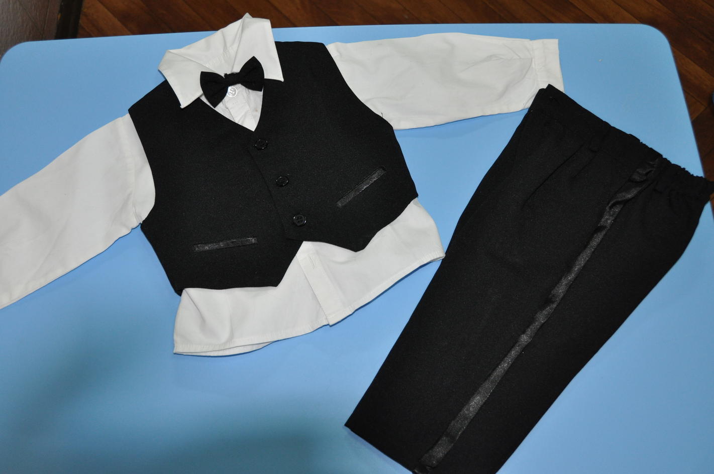 нарядный костюм мальчику на 1 годик 400р жилетка, рубашка, бабочка, брючки Вложение 10358