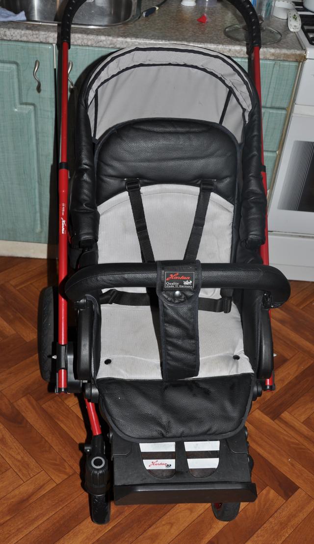 Продаю коляску Hartan VIP XL ОТЛИЧНАЯ ЦЕНА!!! 15000Р люлька в этой коляске очень просторная, в отличии от нашей второй коляски Бебекар Hartan VIP XL 2в1 (Хартан VIP XL) : Производитель: Германия Комплектация Hartan VIP XL: Люлька, шасси, прогулочный блок, кожаная накидка на ножки, 2а дождивика ЦЕНА: 15 000 рублей (новая стоит 40 000р) продаю тк ребенку сейчас 1,3 г, на весну/лето/осень у нас Маккларен. люлькой почти не пользовались. Детская комбинированная коляска 2в1 Hartan VIP XL 2011 (Хартан Вип Эксель) Коляска Hartan Vip Xl – коляска премиум класса. Отличное немецкое качество выражено во всех деталях коляски Hartan. Одним движением руки шасси легко и компактно складывается, люлька становится абсолютно плоской! Так Ваша коляска поместится в багажнике маленького автомобиля. Еще одно отличительное качество коляски то, что она является одной из самых легких колясок – вес коляски составляет всего 12кг. Широкая люлька-переноска Hartan VIP XL позволит Вашему малышу чувствовать себя просторно, даже если Вы используете меховой мешок. Бесшумный ход коляски и регулируемый амортизатор помогут не нарушать сон ребенка. Еще одно преимущество коляски Hartan Vip XL – вращающиеся передние колеса. Ее маневренность позволит Вам с легкостью управлять коляской, даже если Ваш малыш уже подрос. Правильно продуманная геометрия шасси позволит Вам без особых затруднений передвигаться по заснеженным дорогам, траве, гравию. Ну и, наконец, дизайн коляски, строгие линии, стильная расцветка, будет постоянно привлекать к себе внимание мимо идущих прохожих. Особенности люльки Hartan VIP XL: Дышащие современные материалы; Многоцелевой, регулируемый капюшон; Вместительная Накидка к люльке крепится кнопками; Съемные детали возможно стирать при температуре 30 градусов. Особенности прогулочного блока Hartan VIP XL: Регулируемся опора для ног - коляска никогда не станет маленькой. Есть бампер защиты. Прогулочный блок используется в двух положениях: лицом к маме и наоборот. Пятиточечные ремни безопасности. У спинки регулируется угол наклона, есть положение лежа. Многоцелевой капор имеет возможность закрываться до ножек, при этом в нем есть смотровое окошко. Ткань коляски Хартан не пропускает УФ-лучи до +50 градусов. Особенности колес и рамы Hartan VIP XL: Регулируемая телескопическая ручка Передние одинарные колеса поворачиваются на 360 градусов, есть фиксатор. Задние колеса надувные или бескамерные способствуют мягкости хода. Пользуясь ножным тормозом, вы не запачкаете обувь, как на многих колясках. Легкая алюминиевая рама, которая компактна в сложенном положении. Ручная регулировка амортизации коляски. Вместительная корзина для покупок. Можно установить автокресло возрастной группы 0+. Вес коляски Hartan VIP XL: 12,5кг. Продавать буду через 2 недели, когда снег подтает и мы сожем пересеть с нашу трость МаккларенВложение 12013Вложение 12014Вложение 12015