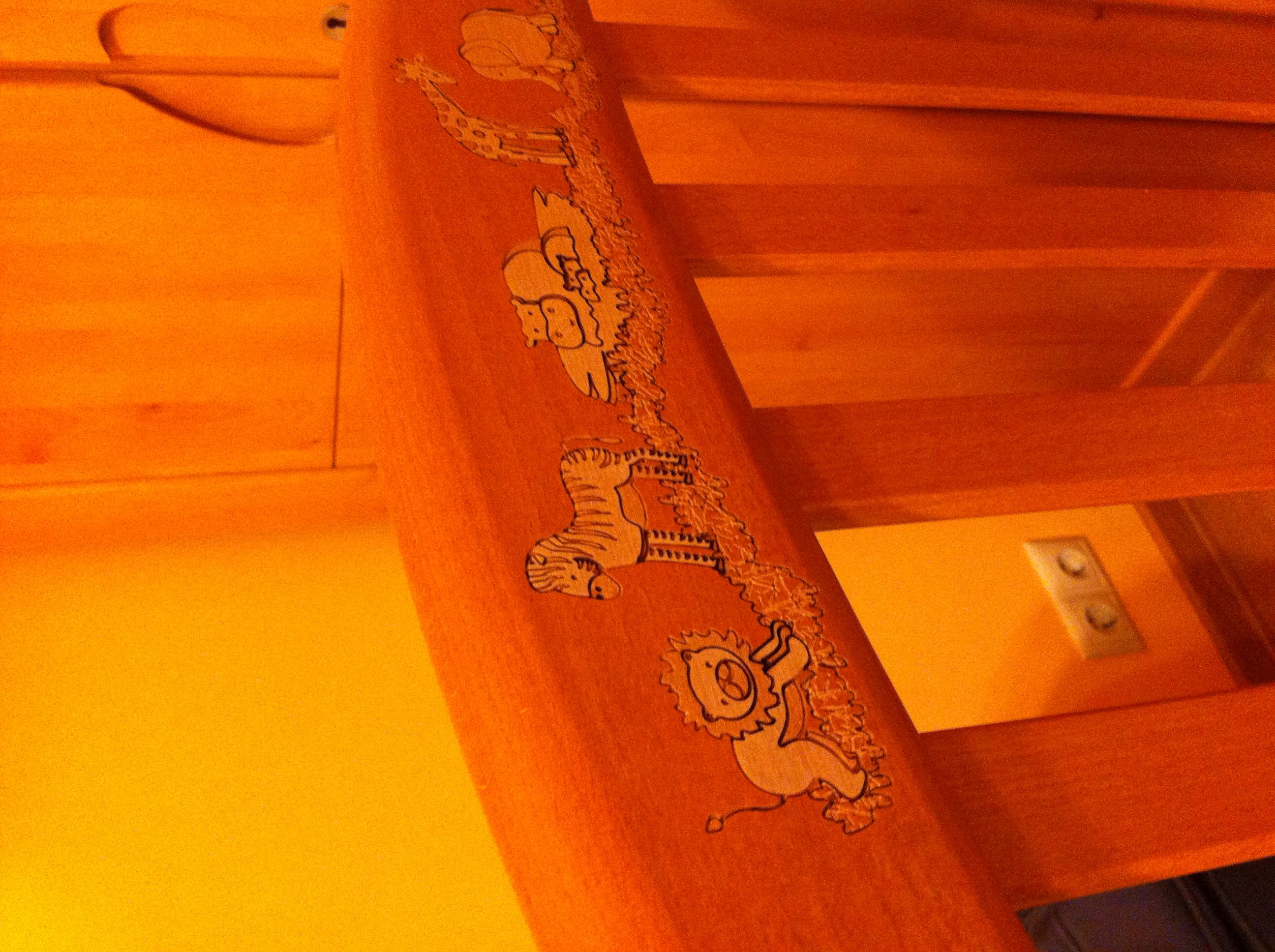 •Бортики кровати опускаются на 20-25 см, один из них снимается полностью, так что кровать может использоваться как диванчик;