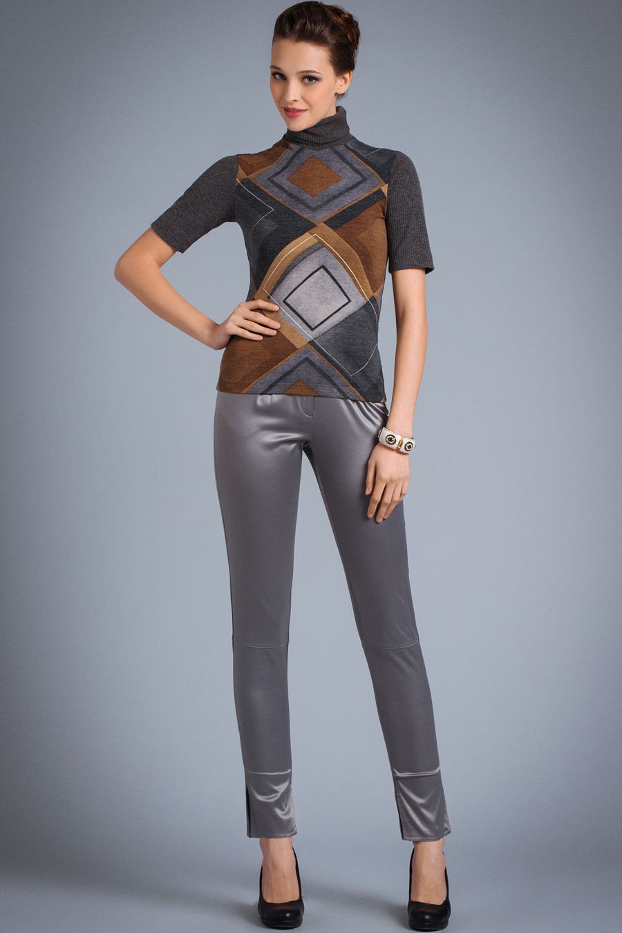1. Брючки 46 рр. Пристраиваю с сожалением – не того цвета выкупились, хотела коричневые, пришли темно-серые(. Сами по себе очень клеевые, ткань мягкая, в общем, фирма не требует рекламы)). На ОБ 98 сидят хорошо, можно "+/-" несколько см. Состав: Вискоза - 65%, Полиэстер - 35%. Модель как на фото, но цвет насыщенно-серый с голубым отливом, более темный (его уже нет в наличии), по запросу попробую сфотать цвет.