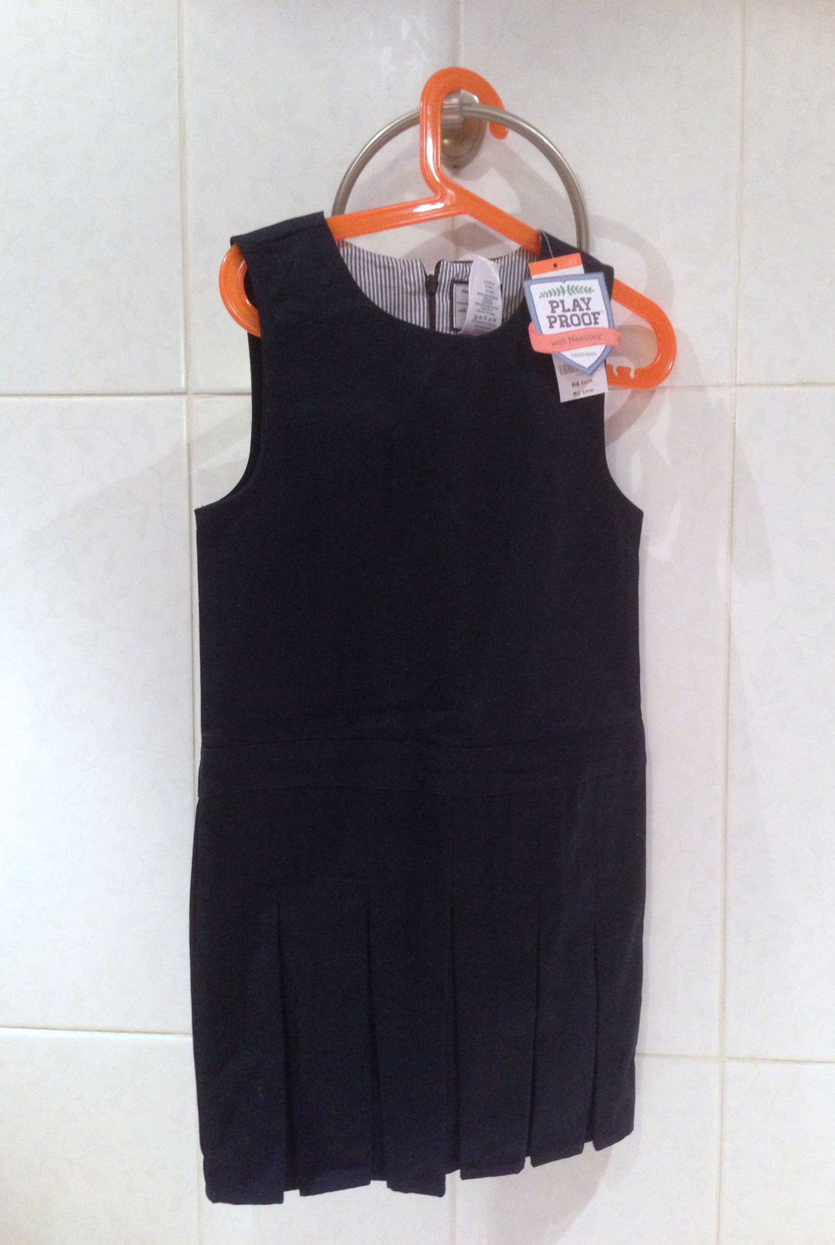 У дочки в школе в последний момент затребовали сарафаны конкретной фирмы, поэтому пристрою с хорошим дисконтом темно-синие школьные сарафаны, которые покупала заранее, никак руки не доходили заняться пристроем: