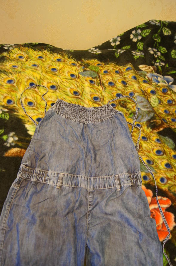 Очень качественная джинса, тоненькая. по фасону - там еще вокруг шеи завязочки и на спине, т.е. резинки нет