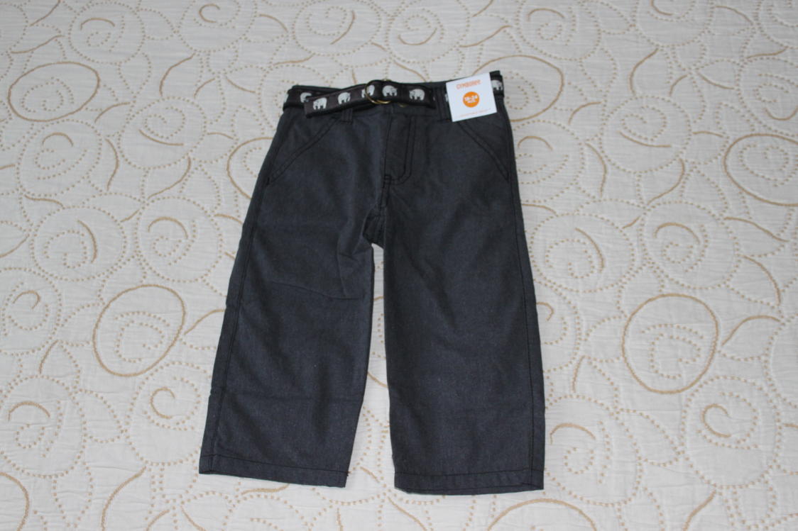НОВЫЕ брюки Джимбори. Темно-серые, ткань плотная, ремень со зверушками, р-р 18-24.