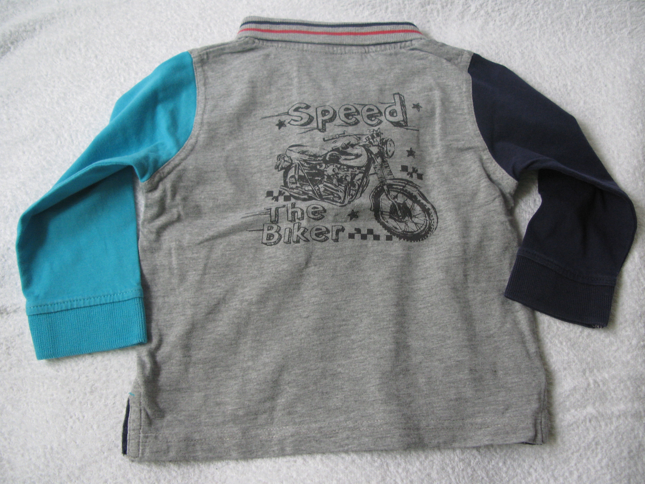 7. Поло серое с разными рукавами, Kidkanai (Киаби), по маркировке 24 мес (86см). Носили немного, состояние отличное.