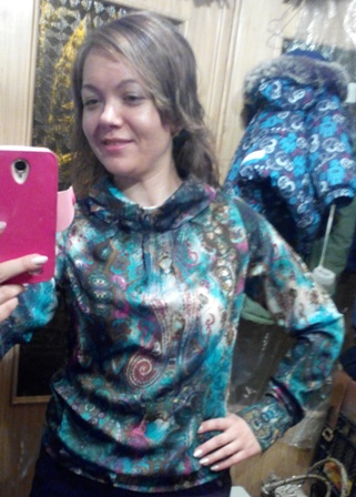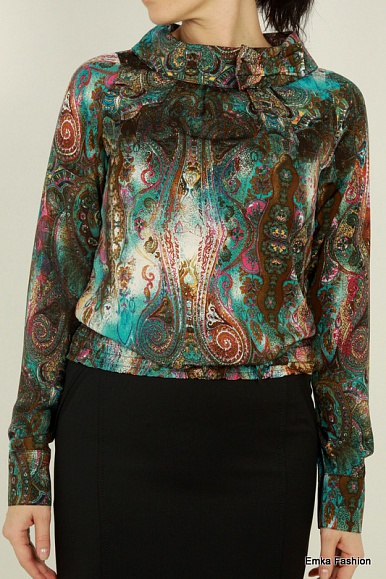 Нереально красивая в жизни расцветка, фото не передает всю красоту ее замысловатых узоров, муж меня долго рассматривал)). Шелковистая и наиприятнейшая к телу ткань (100%вискоза). И в пир, и в мир, практически под любой по цвету низ, универсальная. Но маломерка((. На руках 2 размера: с маркировкой 44 (в реальности на 42) и 46 (на 44). Последняя сидит на мне хорошо (я 42-44), но без запаса, а я люблю свободнее, записалась на еще бОльший размер, уже выкупилось и уже ношу с удовольствием.